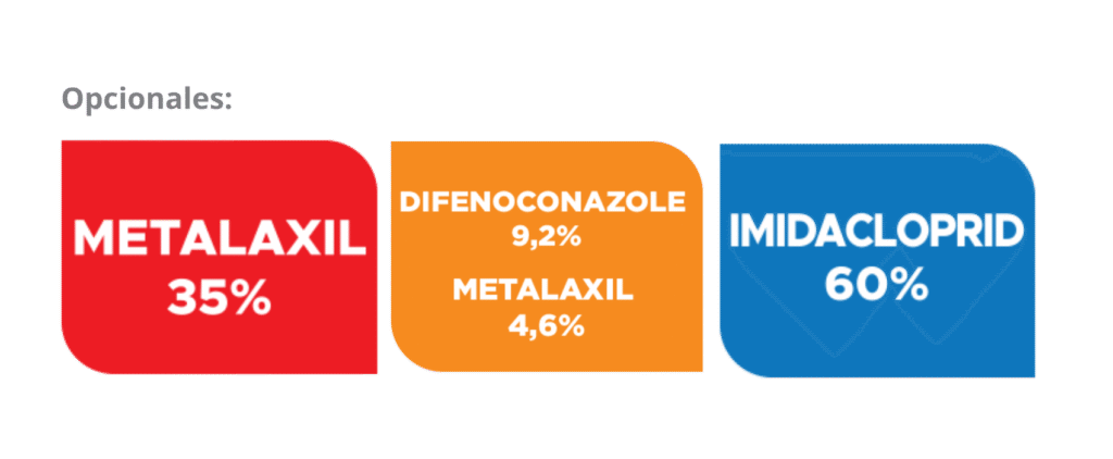 Contiene fungicida de contacto Thiram, combinado con fungicida sistémico Carbendazim, controlando las enfermedades causadas por hongos que atacan la semilla desde la siembra y con posterioridad a la germinación.